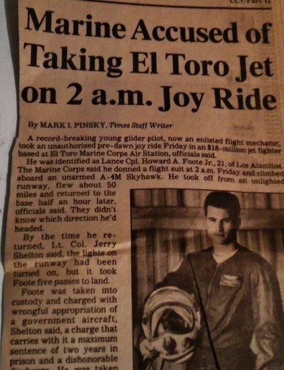 But the dream of flying a USMC fighter never left him. One day in 198 he gassed up a Skyhawk and took it for a joyride.