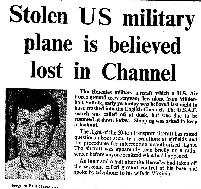 The USAF investigation showed Sgt. Meyer was “under a considerable amount of stress” in the days leading up to the theft. He was married just eight weeks before his deployment to England and his wife constantly badgered him to come home – because she was being sued by her ex-husband.