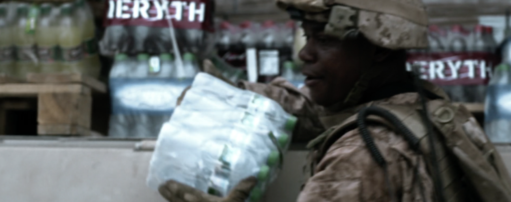 In the opening scene of the film, the Marines at Patrol Base Cobra are under heavy attack from enemy forces. But this Marine is ordered to finish unloading supplies from a truck rather than firing his weapon to defend the area.