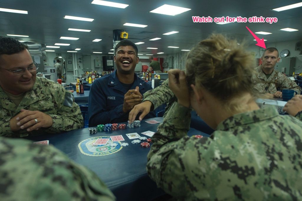 Yes, everyone hates it, but volunteering to crank in the galley might save you from getting caught. Once you’re called back to your division, it’s your partner’s turn to reciprocate.