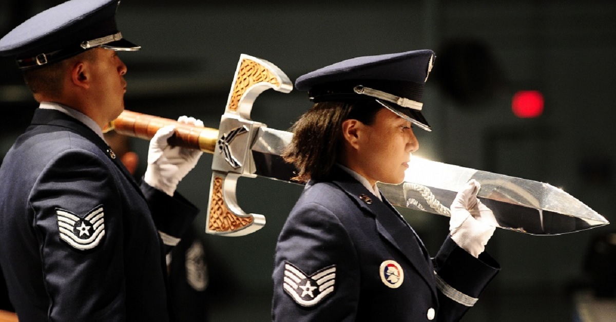 Everyone in the military (including the Air Force) scratches their heads over why ridiculous and over-sized swords are given to high ranking Air Force officers. The real reason is rooted in tradition and a dash of silliness. U.S. Air Force NCOs honor officers who have made significant contributions to the enlisted corps by inducting them into the Order of the Sword. The keeper of the Air Force Master Sword, the Chief Master Sgt. of the Air Force, bestows the honored officers with a sword of their own, fitting to their duty.