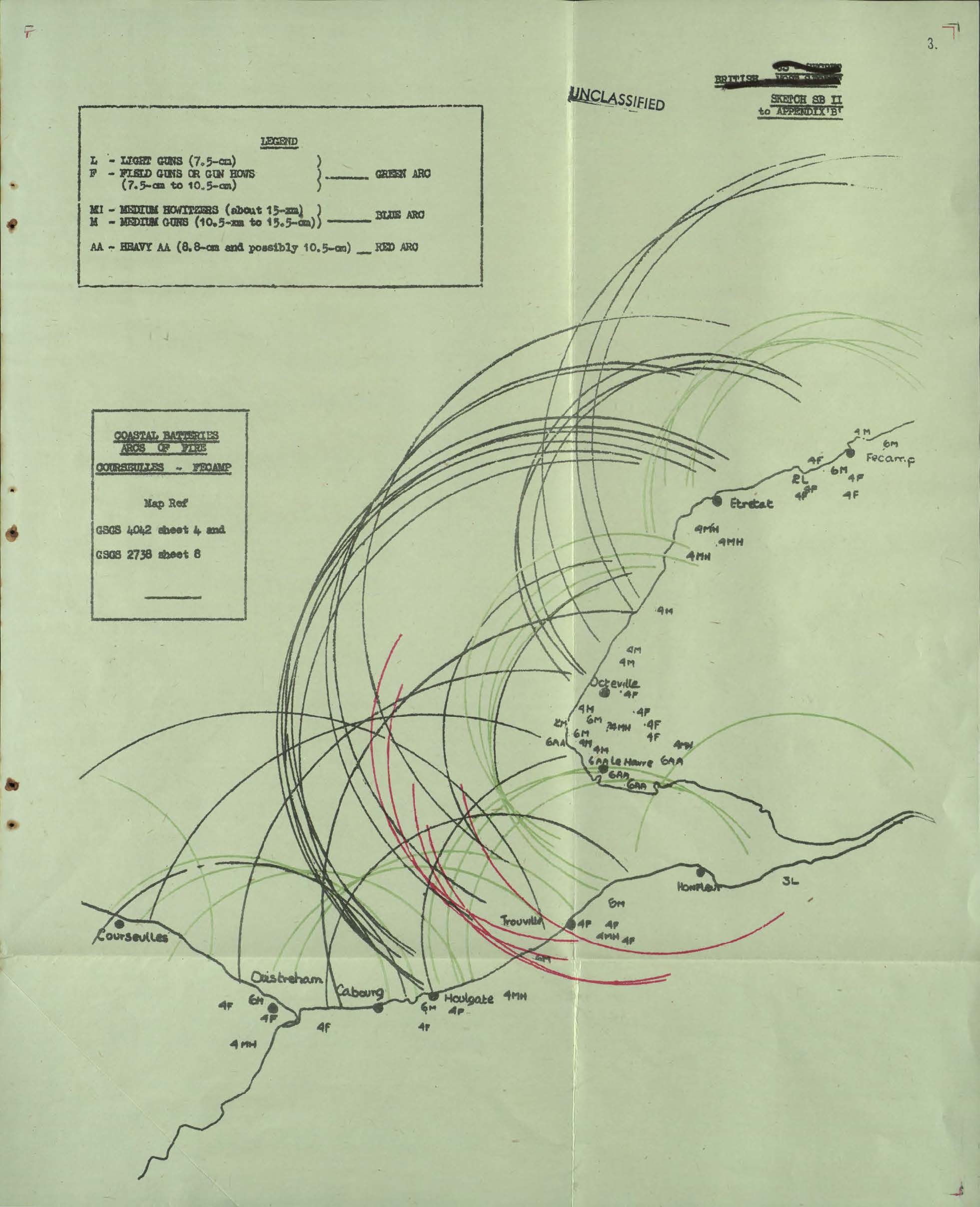 The map above allowed the planners to get a look at what sort of artillery emplacements troops would face at each beach, both during their approaches and landings and once they were on the soil of France.