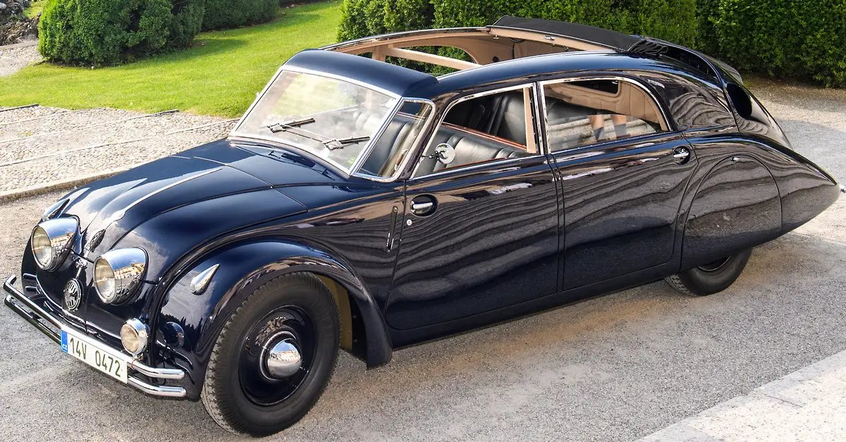 In the first week of its availability, seven officers took the 95 horsepower, 3.4-liter V8 engine for a spin and never came home after spinning it out of control. But there was a safer, more economical version. In 1939, the Volkswagen Beetle was introduced, which borrowed a lot of design elements from the Tatra, so much so that its designer, Porsche, had to pay Tatra for infringement.