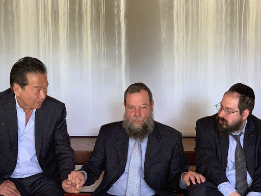 The Japanese man from Antwerp, Belgium, was Nobuki Sugihara, youngest and only surviving son of Chiune Sugihara. He met in Philadelphia with Rabbi Yossy Goldman, son Rabbi Shimon Goldman. The elder Goldman was a teenage student that fled Poland, and then Lithuania, with his class and teachers on one of Sugihara’s visas. Shimon Goldman passed away in 2016 at the age of 91, leaving behind more than 100 descendants, including 80 great-grandchildren. “Every time he clutched a great-grandchild to his heart, it was not only love but also an indication for him that Hitler did not win,” Yossy remembered of his father. Yossy was joined by his own son, Rabbi Yochonon Goldman, and the three men sat down to a traditional Japanese tea ceremony. “I would not be here, my son would not be here, none of us would be here if it was not for your father,” Yossy said to Nobuki, “God bless his soul. I’m sure there’s a special place in heaven for him. Thank you.”