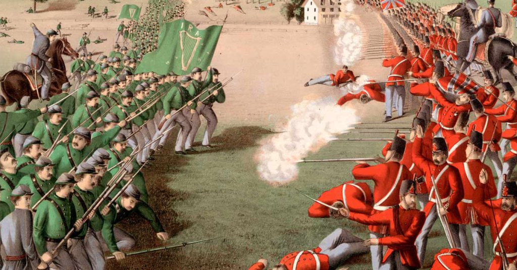Called the Fenian Brotherhood, its original aim was to send money, arms, and supplies to Irish rebels in Ireland via Irish émigrés living in the U.S. Many in the movement were soon convinced that liberating Ireland through a direct uprising was impossible, so they decided to step up their game a bit. If the Irish couldn’t mount an invasion of Ireland, then they would mount an invasion of Canada, the nearest British-held country and trade it for Irish independence.