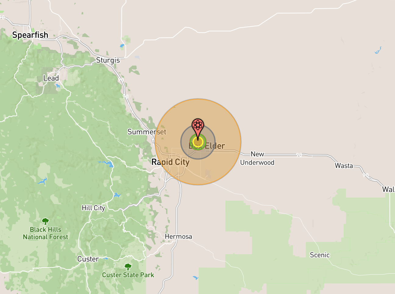 If the Soviets nuked Ellsworth Air Force Base, S.D. in the 1960s, the largest yield would have been 2.3 Megatons, enough to obliterate the base along with the surrounding area and nearby Rapid City. A surface detonation would have left a sparkling crater that generations later would probably have made a fine national park in the post-apocalyptic United States.