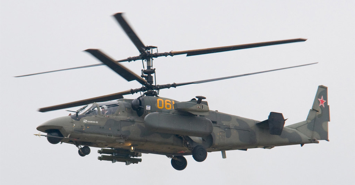 The Ka-52, in a nutshell, is an attack helicopter with a top speed of 196 mph, an 18,000-foot ceiling, and a 683-mile range. It can carry a few kinds of anti-tank missiles, an anti-aircraft missile, 80mm unguided rockets, and a 30mm main gun. It can also carry a dedicated anti-ship missile, the Kh-35 in its Uran configuration.