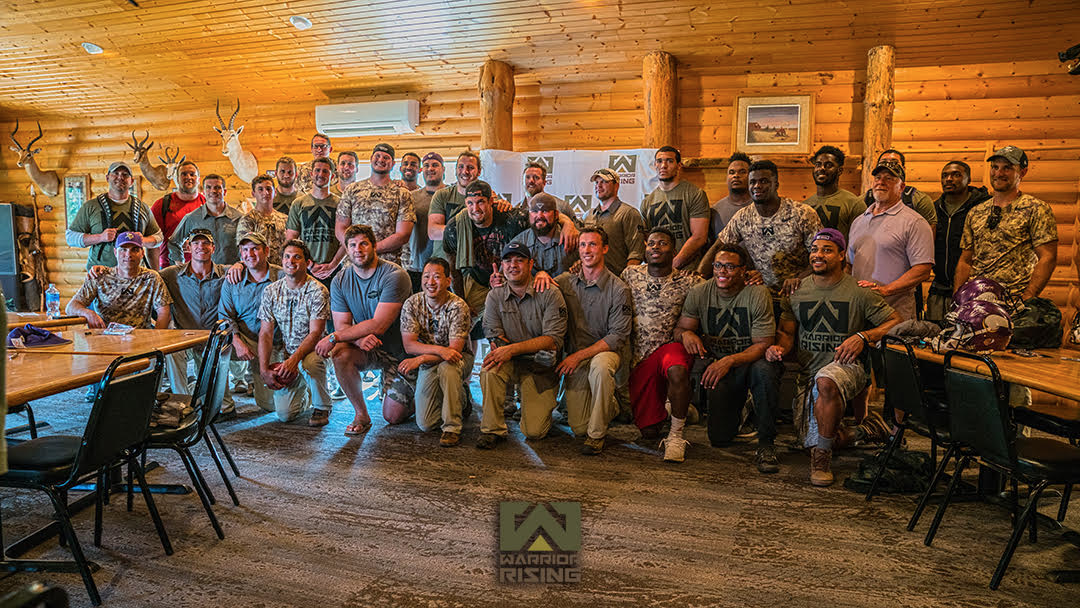 Minnesota Vikings surrounding Leroy Petry (center) after a fundraiser for Warrior Rising executed by Mission 6 Zero.