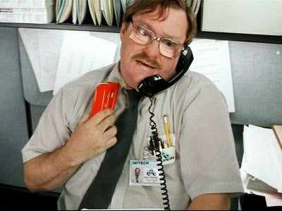 You can acquire a new piece of gear from a buddy at supply through a “drug deal,” but if you get an awesome new red Swingline stapler like this, Milton may look at you funny.