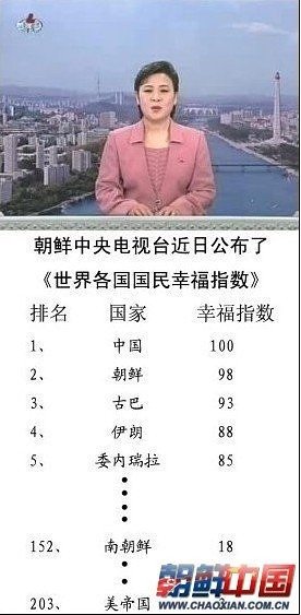 8. North Korea is the second happiest country behind China, according to North Korean researchers. The United States is dead last.