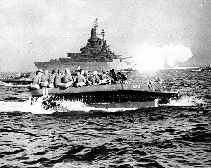 And this footage, much of it shot by military combat cameramen, was released by the military in order to show the heroism of the sailors to moviegoers back home. And, it was combined with footage from the action ashore where soldiers and Marines enjoyed a lightly resisted landing but then had to fight fiercely for every additional yard as cave after cave after cave was found to contain fanatical defenders, well-armed and well-trained to bleed the landing forces dry.