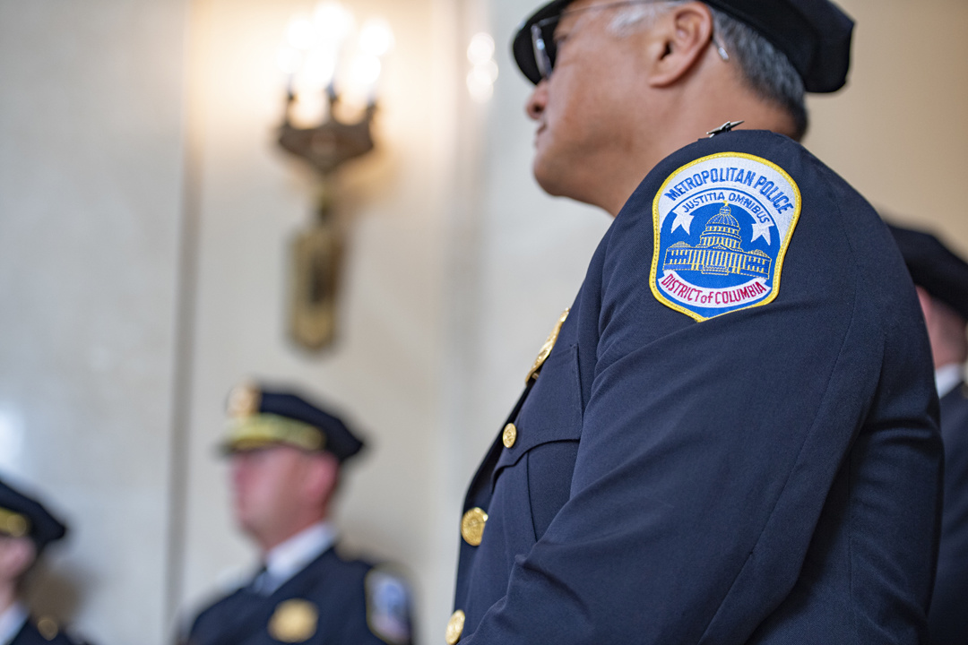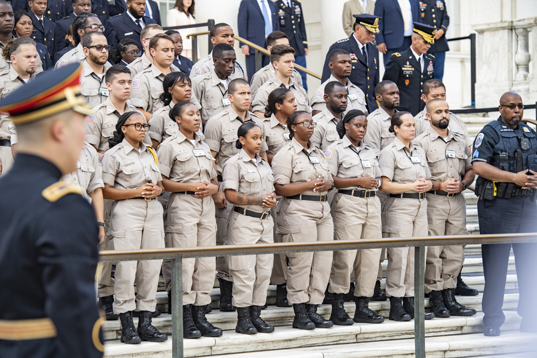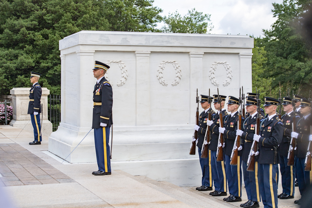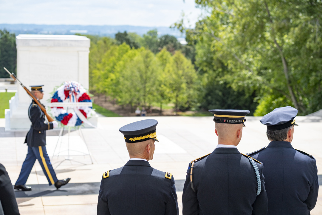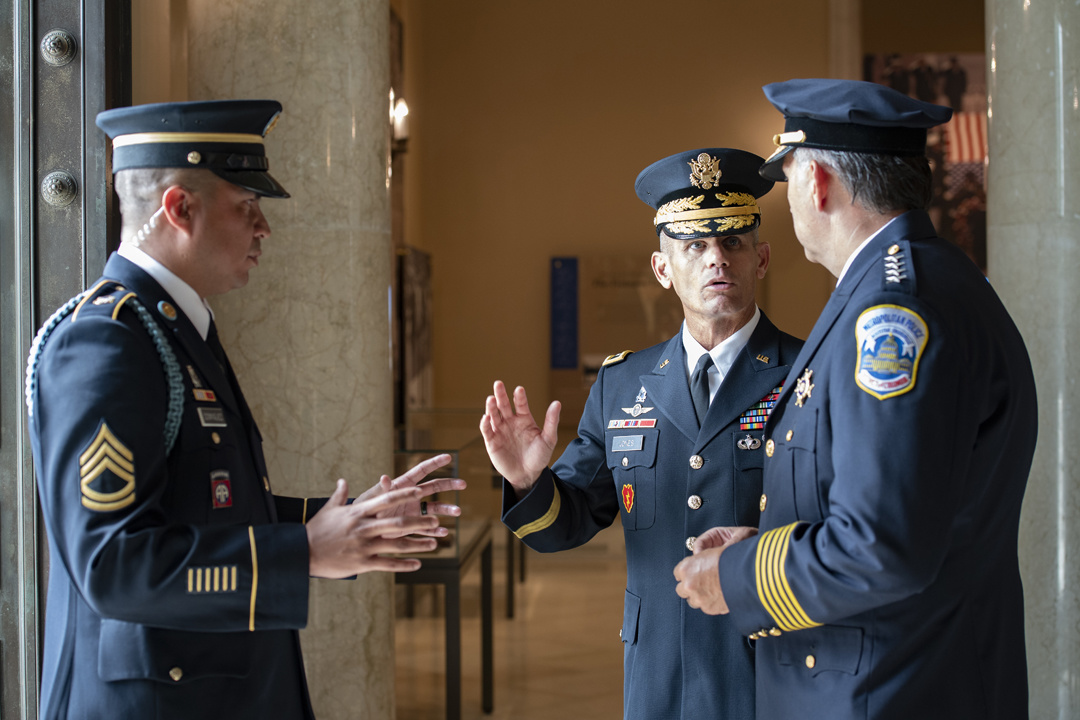 The chief of police of Washington D.C’s Metropolitan Police Department, Peter Newsham, visited the Tomb of the Unknown Soldier on Aug. 14, 2019 with many of his senior leaders and police officers and participated in a wreath-laying ceremony and other events, giving us a good chance to see how American and foreign dignitaries are allowed to show their respect for the tomb and all it represents. Here are 15 photos from that visit, all taken by Elizabeth Fraser, Arlington National Cemetery.
