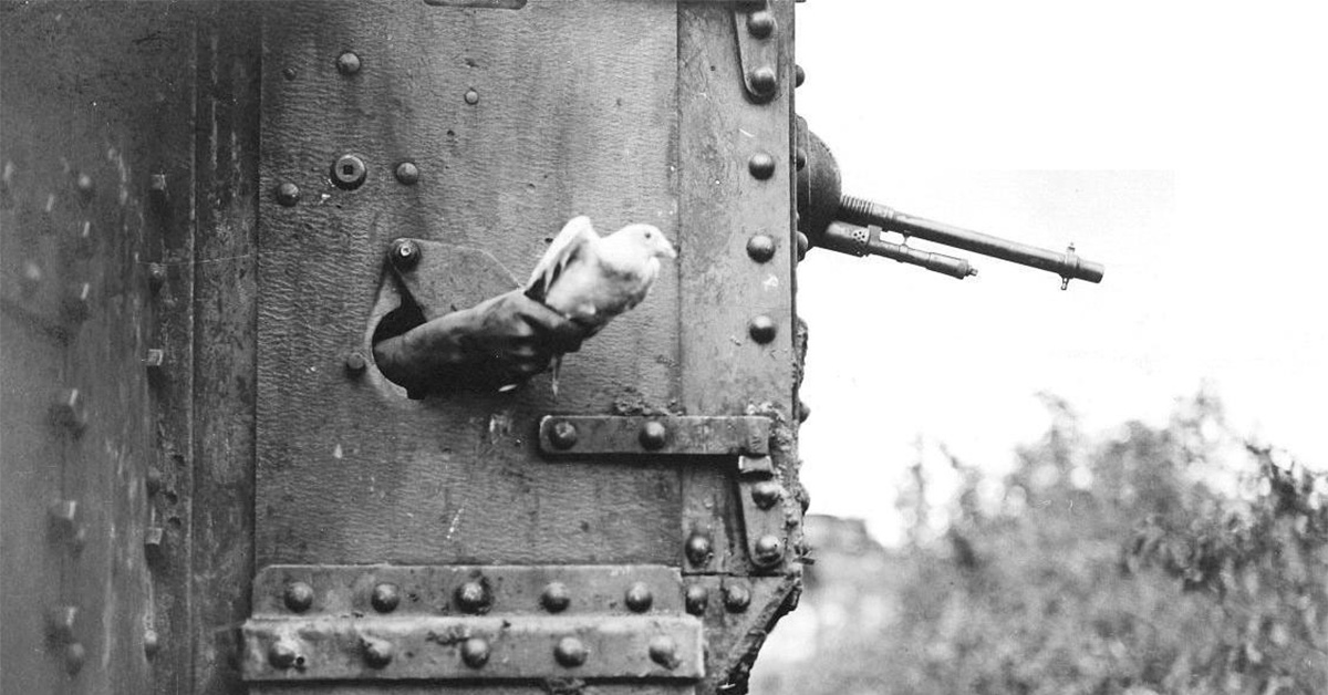 Communications between squads and battalions were typically delivered by a runner — a troop that moved across the battlefield carrying a message. For higher level communications, signal troops would write messages on tiny pieces of paper that would then be rolled up and attached to pigeons. Pigeons have natural magnetoreceptors and an instinct to return home, both of which they use to send a message on its way.