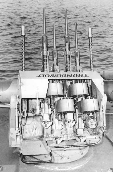 By the time the war ended, the turret found its onto PT boats and some of the older battleships. Afterwards, it faded into history. Today, the Navy uses somewhat similar mounts for the Mk 38 Bushmaster, a 25mm chain gun. Still, the Thunderbolt showed some very interesting possibilities during its brief, but potent lifespan.
