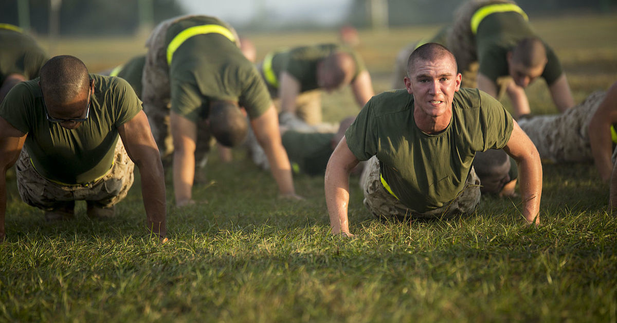 Time to work on those shoulders and pecs. To be a Marine, men between 21 and 25 have to be able to whip out at least 40 pushups, or 18 for women in the same age group. Soon, you’ll have to be able to handle hand-raised pushups, where your hands come off the ground after each repetition. 10 of those puppies will be the bare minimum to pass!