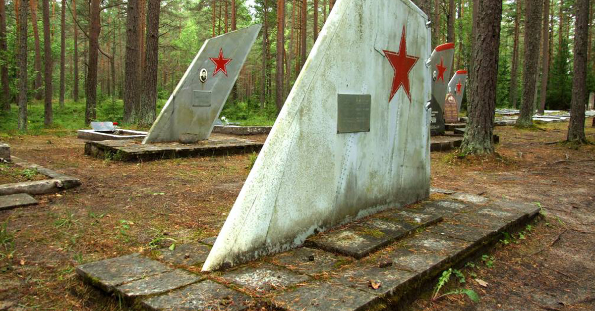 Somewhere in an Estonian Forest, causal hikers will come across a sea of red star-adorned metallic strips jutting out of the ground. Like some giant shark jaw, the 9,000-foot area is next to a wooded area, covered with what are actually aircraft tail fins, which are really grave markings of Soviet airmen.