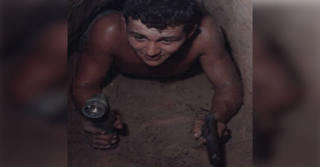 If fighting the well-defended Viet Cong on their home turf wasn’t dangerous enough, imagine having to crawl your way through a series of extremely tight and narrow underground tunnels to capture or kill them. Armed with only a flashlight, a single pistol, or maybe just a knife, a “Tunnel Rat” didn’t have much in the way of defense.