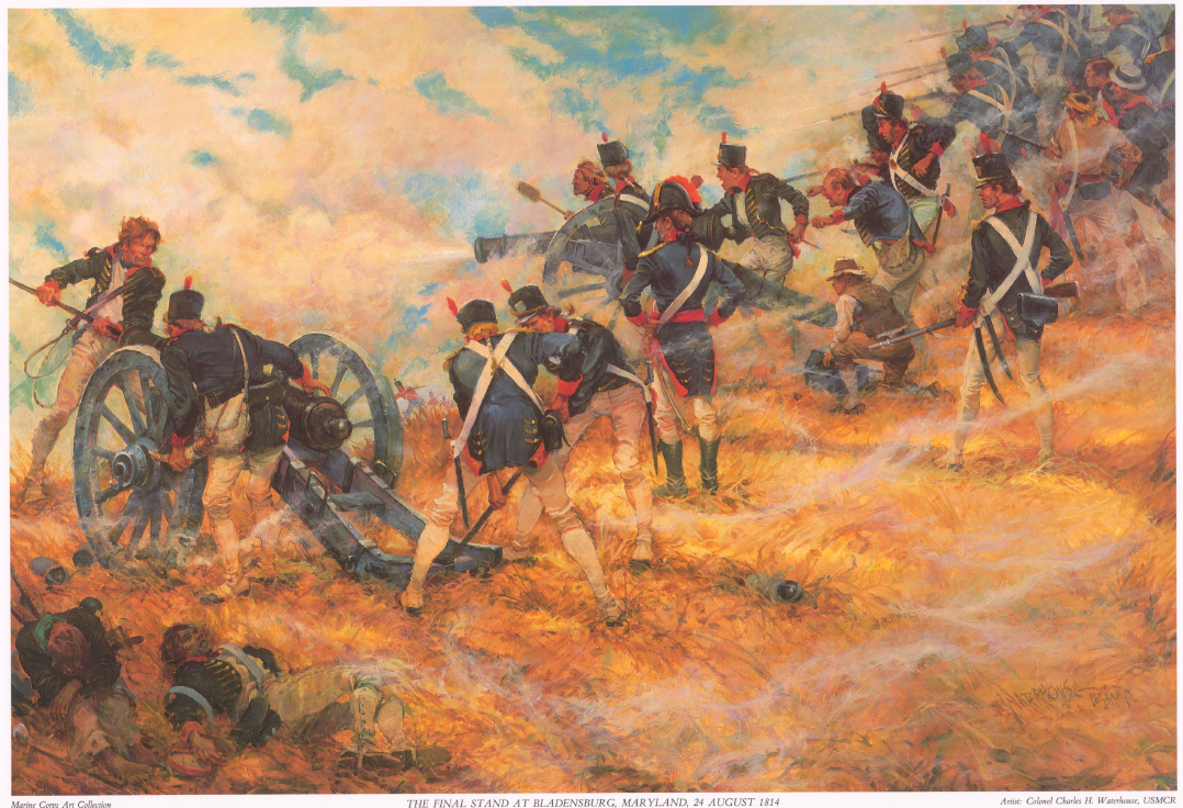 The very thought seems next to impossible these days, but the War of 1812 saw the only time a foreign country ever occupied the American capital. Some 4,000 British troops landed in the Chesapeake Bay area and made their way eastward, toward Washington. The only thing standing in their way was 6,500 American militiamen and 480 U.S. Marines and sailors at Bladensburg, Maryland.