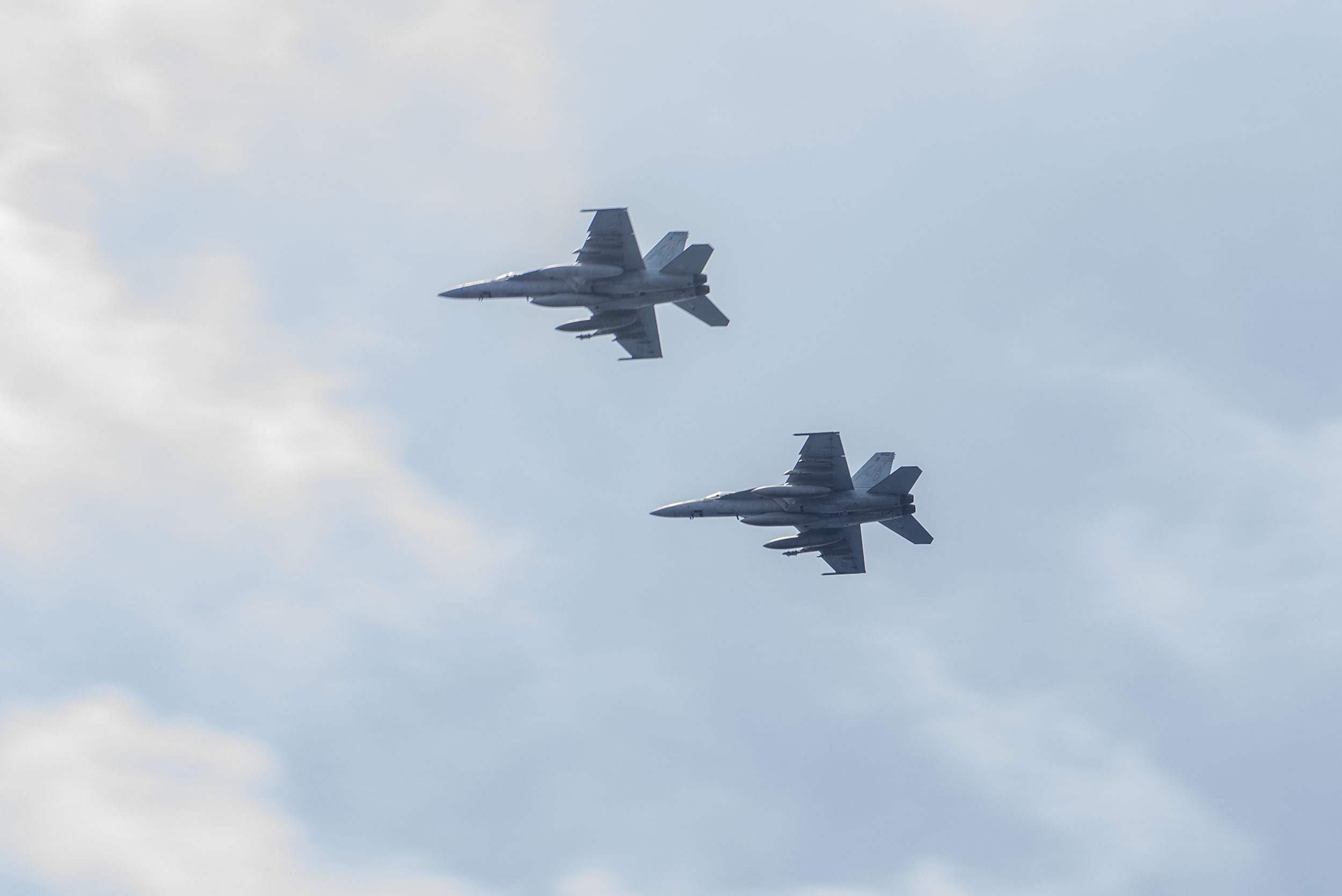 Each of these carriers usually operates with four squadrons of strike fighters, either F/A-18C Hornets or F/A-18E/F Super Hornets. That’s a powerful force, but the F/A-18Cs are limited to two missiles like the AGM-84 Harpoon/SLAM or AGM-158C LRASM, while the F/A-18E/Fs can carry four.