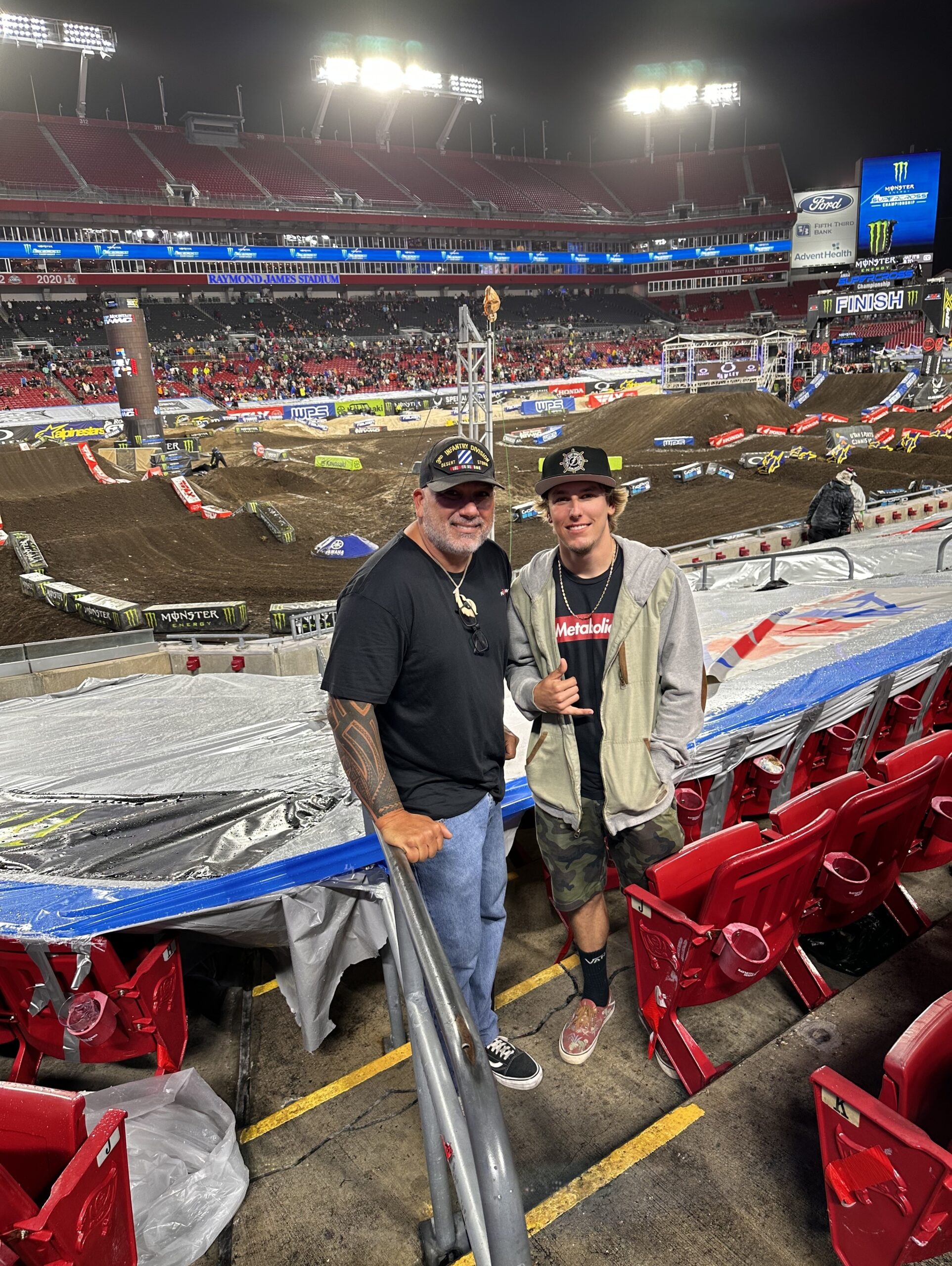 He saw the Monster Energy Supercross was coming to Tampa and, knowing his son’s love for the sport, he signed up for Vet Tix, a non-profit that receives donations of event tickets from performers, artists, sports teams and other organizations who want to support the military-veteran community. Vet Tix then distributes these donated tickets to veterans, military members currently serving and to first responders.