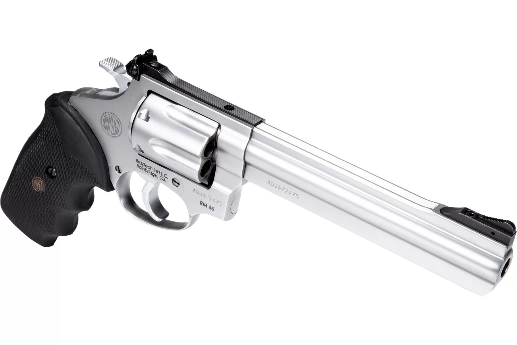The .357 Magnum cartridge is one of the most versatile and reliable handgun cartridges in the world. It can deliver over 500 foot-pounds of energy at the muzzle and can take down most medium-sized game within 100 yards. However, it also has moderate recoil and noise, which can affect your shooting comfort and accuracy. The Rossi RM66 has a solid frame and a heavy barrel that help absorb some of the recoil and muzzle rise.