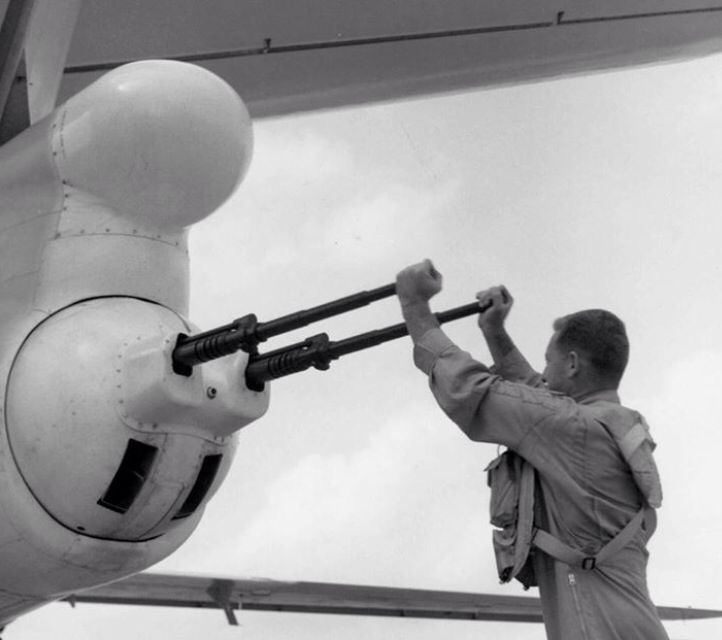 After WWII, with the emergence of nuclear war, the Navy sought to remain relevant with the ability to deliver nuclear weapons. In 1949, the Douglas Aircraft Company was awarded a contract to produce a carrier-based strategic jet bomber. Designated the A-3 Skywarrior, the massive aircraft was nicknamed “the whale” and could operate from the new Midway-class carriers with a maximum payload of 12,800 lb. To protect itself from enemy interceptors, the Skywarrior’s crew initially included a pilot, bombardier/navigator and a tail gunner. Sitting behind the pilot in a rear-facing seat, the gunner controlled a radar-guided, twin tail-mounted 20mm M3L cannon.