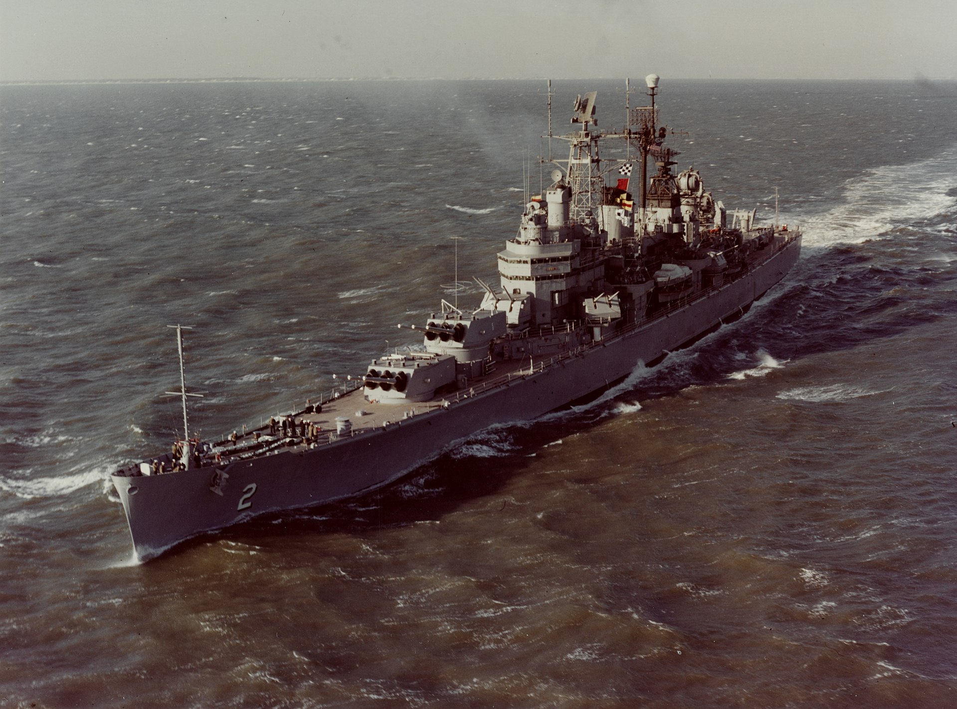 In recognition of the valor of Canberra‘s crew, U.S. President Franklin D. Roosevelt directed that an American ship be named in her honor. The Baltimore-class heavy cruiser, USS Pittsburgh (CA-70), was selected and renamed USS Canberra (CA-70). On April 19, 1943, she was launched by Lady Alice Dixon, the wife of Australia’s Ambassador to the U.S., Sir Owen Dixon. The American Canberra fought at the Battle of the Philippine Sea and supported the Okinawa and Taiwan campaigns. She was later converted to a guided missile cruiser and participated in the Cuban Missile Crisis blockade and supported Hue during the Tet Offensive before being decommissioned in 1970.