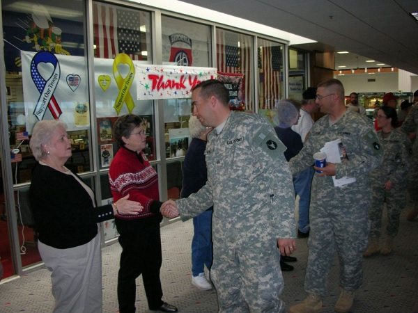 Where Bangor shines is within the Maine Troop Greeters. Beginning in May 2003, a small group of Bangor-area residents gathered to meet troops at the Bangor International Airport. Since then, they have greeted well over 7,600 flights and over 1.5 million troops. Rain or shine, day or night, and nearly everyday, they’re out there. With a town population that could easily fit into the Navy-Marine Corps Memorial Stadium, one of the smallest NCAA football stadiums, the Maine Troop Greeters of Bangor are still over 600 strong. From older veterans to soccer moms with kids to pretty college girls, everyone in Bangor comes to see the troops.