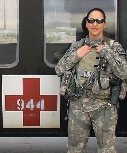 While flying a medevac mission, Hegar’s Blackhawk helicopter was shot down by insurgents and she was wounded in a well-executed trap. According to an interview with NPR, she climbed on the skids of a Kiowa helicopter that landed to extract her and, despite her wounds, provided cover fire with her M4 while the aircraft flew off.