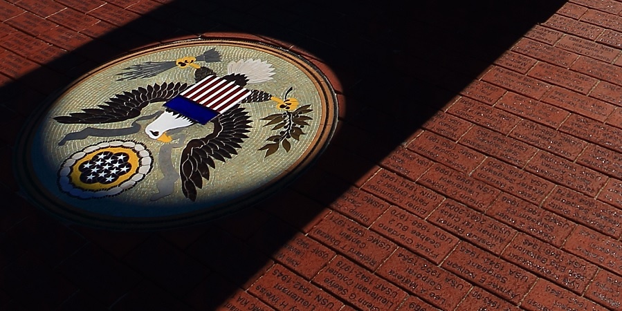 Surrounding the Great Seal are 1750 red paver bricks — over 750 of these pavers bear the names of the servicemen and women who have supported our nation. On the outside of the pavers are two rows of bricks called the “Soldier Rows,” which symbolize the unbreakable defense our troops offer.