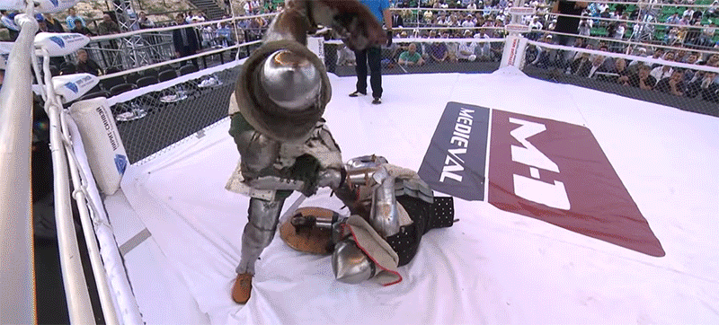 M-1 Global is a Russian mixed martial arts company that has a Medieval “Knight Fight” circuit. The fighting began with jousting, but proved so popular, one-on-one fighting was a natural next step.