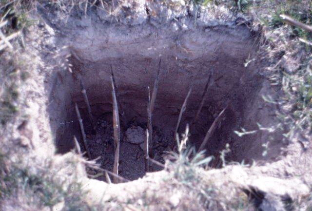 A more insidious trap featured spears pointed downward so victims would be injured only when they tried to pull out of the trap.